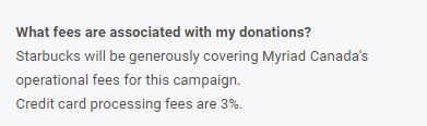- Avantage fiscal – En tant qu’organisme de bienfaisance enregistré au Canada en vertu de la Loi de l’impôt sur le revenu (Canada), Myriad Canada fournit des reçus officiels pour les dons, ce qui permet aux donateurs de réclamer l’avantage fiscal auquel ils ont droit en vertu de la loi canadienne.